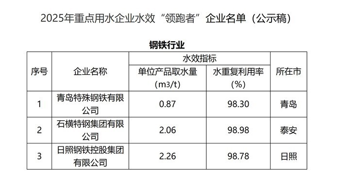 9月22日,记者从山东省工业和信息化厅获悉,为提高工业企业节水效能,推动工业绿色低碳高质量发展,根据《山东省重点行业水效“领跑者”认定管理办法(试行)》,省工业和信息化厅会同省水利厅、省发展改革委、省市场监管局组织开展了2025年重点用水企业水效“领跑者”遴选工作。经企业申报、地市推荐、专家评审,拟确定12家企业为省级重点行业水效“领跑者”,以下是公示名单。