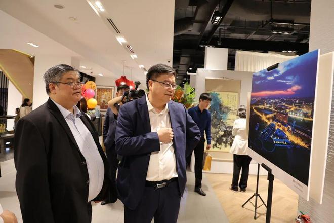 2025年是中国与新加坡建交35周年,9月17日,中新济南未来产业城“对画鹊华”主题书画摄影艺术展在新加坡新中文化旅游促进中心启幕。 济南新旧动能转换起步区管委会副主任史海成、新加坡吉宝集团城市发展(中国)总裁黄良杰、吉宝智城新策城市发展部(中国)高级副总裁傅悦芬、新加坡更生美术研究会名誉会长及亚洲杰出企业家协会当代艺术顾问陈玉庭、新中文化旅游促进中心董事长汪岳林,以及与起步区有合作关系的多家新加坡企业、高校代表、媒体代表等100余人出席活动。