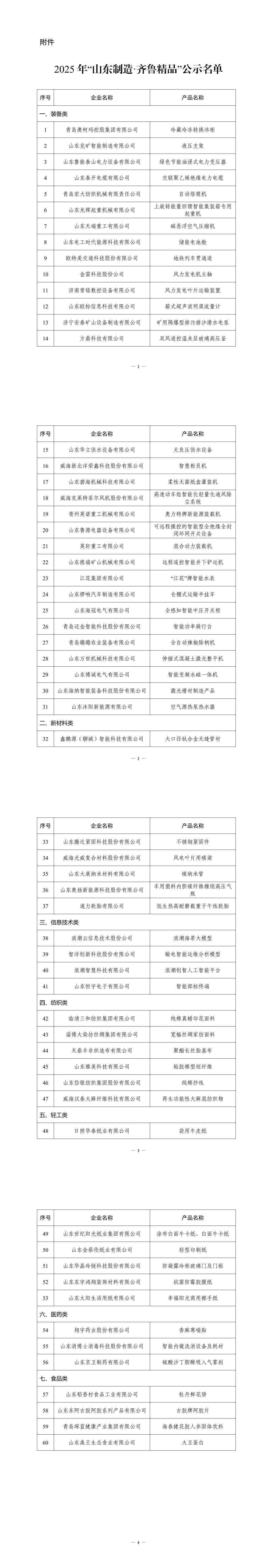 关于2025年“山东制造·齐鲁精品”名单的公示