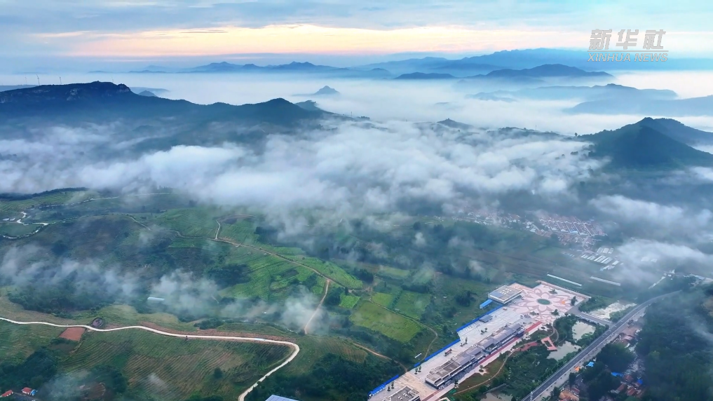 雨后初霁,山东省潍坊市临朐县九山镇薰衣草特色小镇现云海奇观。云雾似轻纱漫卷山间,错落有致的民居、层峦叠嶂的青山、蜿蜒伸展的盘山公路,在飘渺云海中若隐若现,时而显露一角、时而深藏其容,宛如一幅流动的生态水墨画。