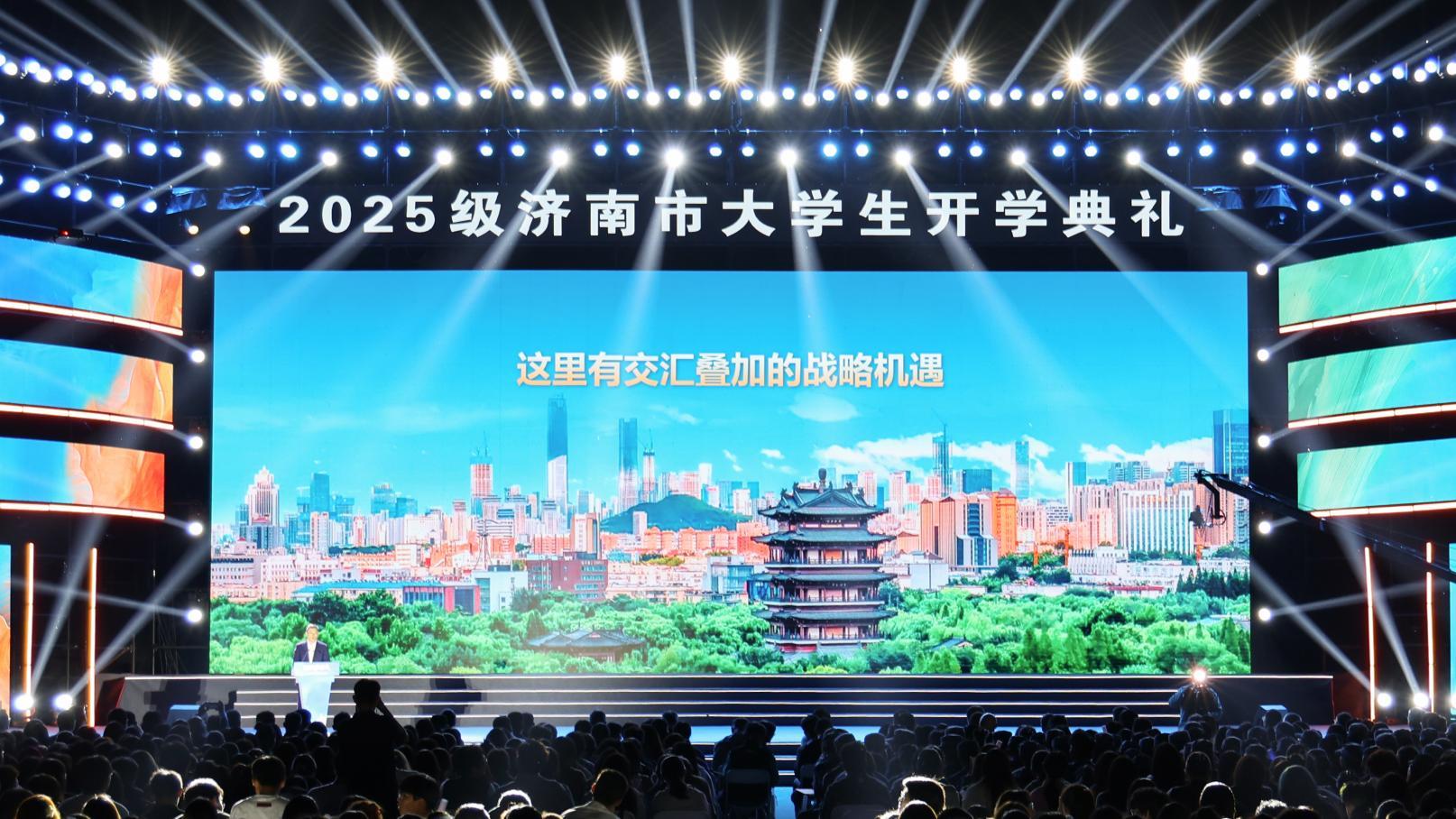 9月25日晚上,“开学 筑梦在泉城”2025级济南市大学生开学典礼在山东师范大学举行。市委副书记、市长于海田出席并致辞。