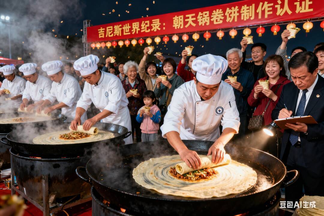 现场布置3口巨型大锅,安排20名左右朝天锅制作师傅,现场制作潍坊特色名吃“朝天锅”,并以一小时制作2500卷的速度免费赠送给市民游客品尝,吉尼斯世界纪录官方将派专业人员现场见证,共同创造属于潍坊美食的世界吉尼斯世界纪录。