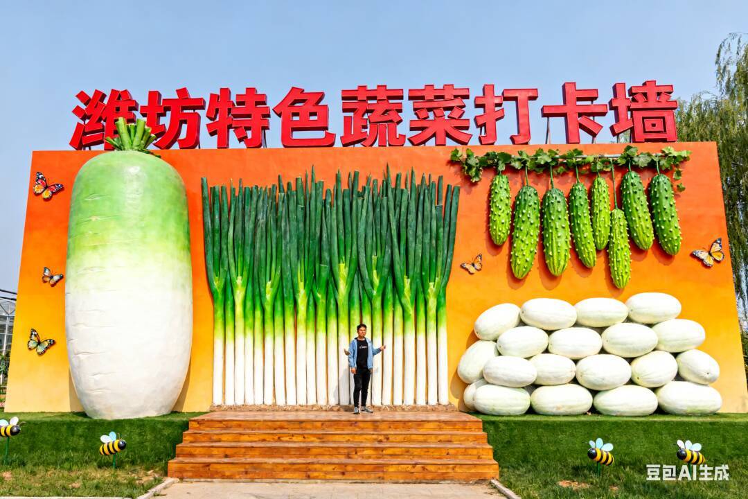 选用潍坊特色蔬菜,摆设巨型蔬菜打卡墙,吸引游客市民打卡,丰富旅游记忆。