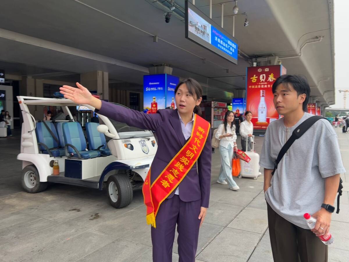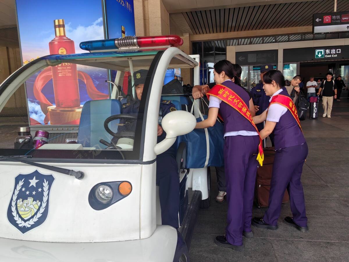 10月1日当天,在济南西站东广场落客平台,记者看到,这里虽来往旅客频繁,但却秩序井然。志愿者和服务人员耐心解答问询、引导方向,为老幼病残孕等重点旅客提供贴心帮助;身着制服的执法人员进行着巡逻疏导,及时引导车辆即停即走,处置各类突发情况,确保交通畅通无阻;后勤保障人员则在电梯、照明、消防等处进行着巡查,确保各类设施设备安全稳定运行……
