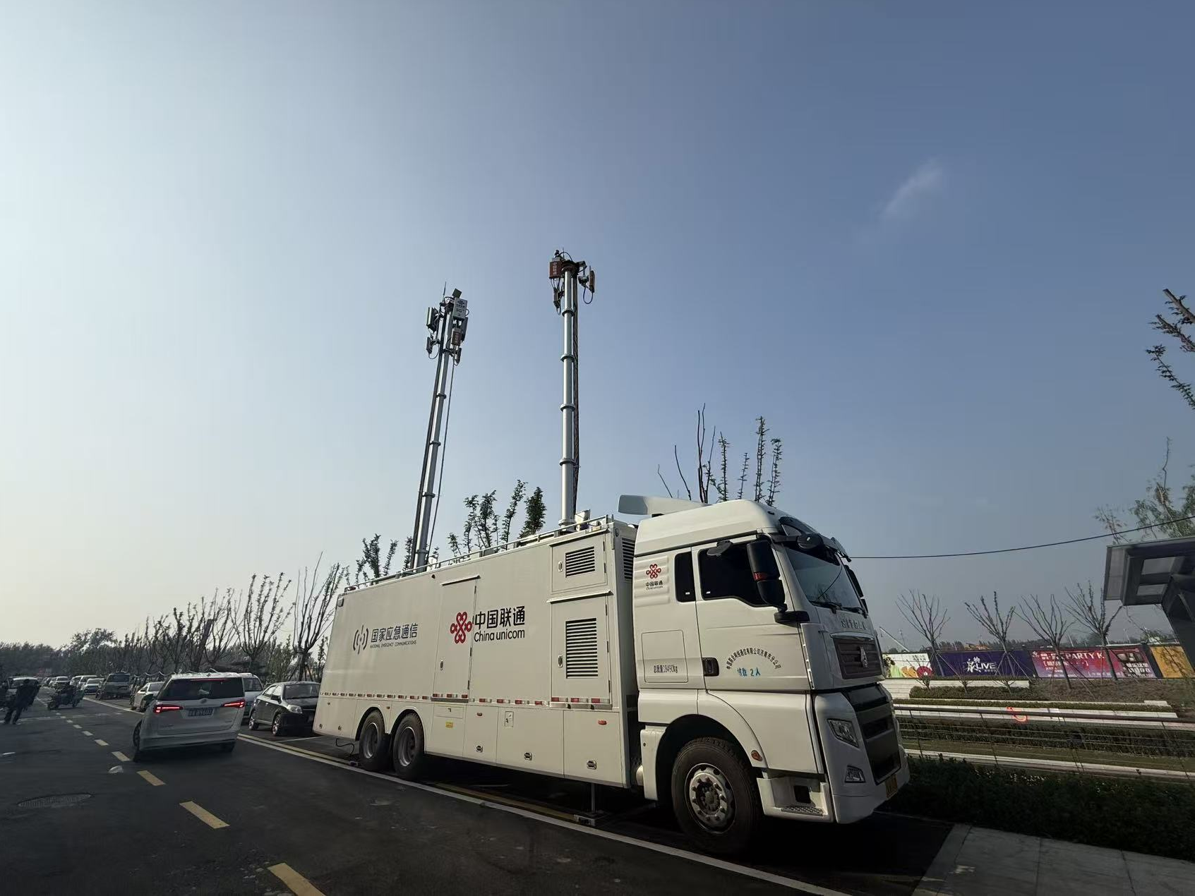 接到保障指令后,机动局成立专项保障团队,制定周密保障方案,并迅速调配 12 米大型应急通信基站车,于开放日前两天奔赴保障区域。抵达现场后,保障团队与园区运营方深度合作,共同勘察并选定最佳保障点位。在确定保障位置后,团队立即启动应急基站车部署工作,先后完成基站车接电、升塔作业,并精细调整信号发射天线角度与高度,使其处于信号覆盖最优状态。依托12米大型应急通信基站车强大的信号穿透能力与覆盖优势,团队将保障重点聚焦于节日期间人员最密集的中新园、名士坊、泉韵 LIVE三大核心区域,针对性强化信号覆盖强度与稳定性。保障团队使用车载华为设备,在现场快速开通3个4G 小区与3个5G小区。可覆盖周边3公里范围,为区域内约 5000 名用户提供优质、稳定的4G/5G语音通话及高速移动网络服务,有效应对节日期间园区人流激增可能带来的通信压力,全方位确保济南起步区鹊山生态文化区“双节”期间通信网络安全畅通,为游客营造良好的游玩体验。