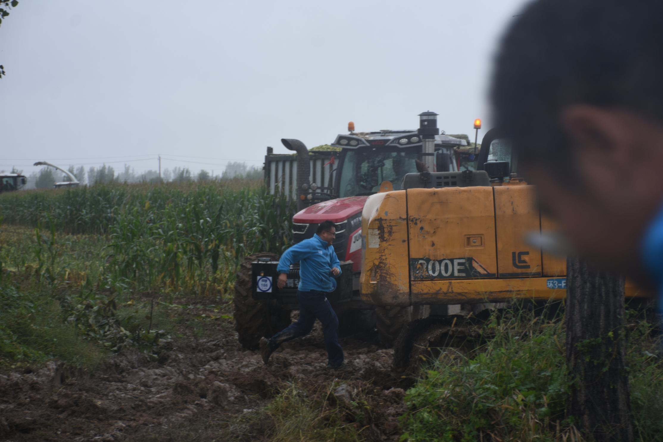 雨水打湿了他们的头发和衣襟,泥泞的土地常常让他们的裤脚沾满泥土,每一步都走得异常艰难。尽管工作强度大、条件艰苦,但团队士气高昂,通过多天的坚持,已将90%的青贮玉米抢收归仓。