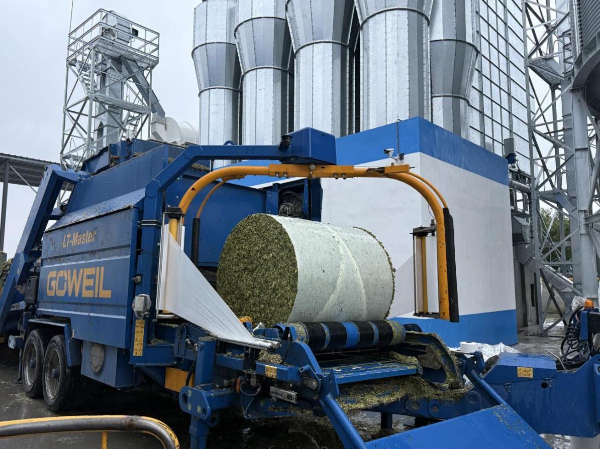 为应对多变天气,得益乳业创新采用“裹包+窖贮”双模式并行的收贮策略。特别使用先进的奥库MP2000-X青贮打捆包膜一体机进行就地裹包,有效避免青贮二次淋雨,确保营养不流失。这种灵活高效的收贮方式,在特殊天气下展现出显著优势。