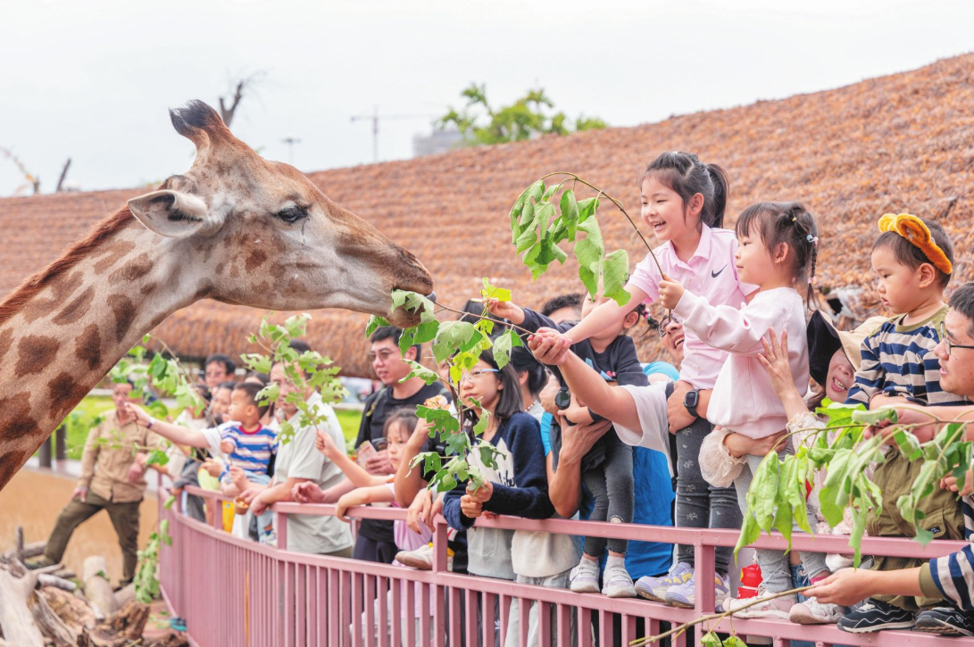 在泉城欧乐堡动物王国,游客近距离与动物互动
