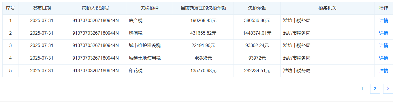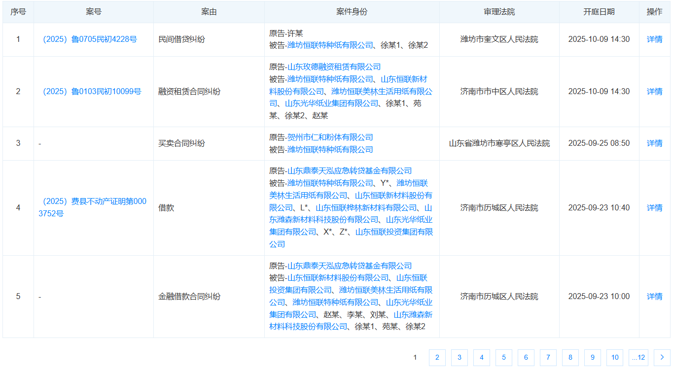 此外,恒联特种纸还涉及多起民间借贷纠纷、金融借款合同纠纷及买卖合同纠纷,并因拖欠税款被潍坊市税务局列入欠税公告名单。