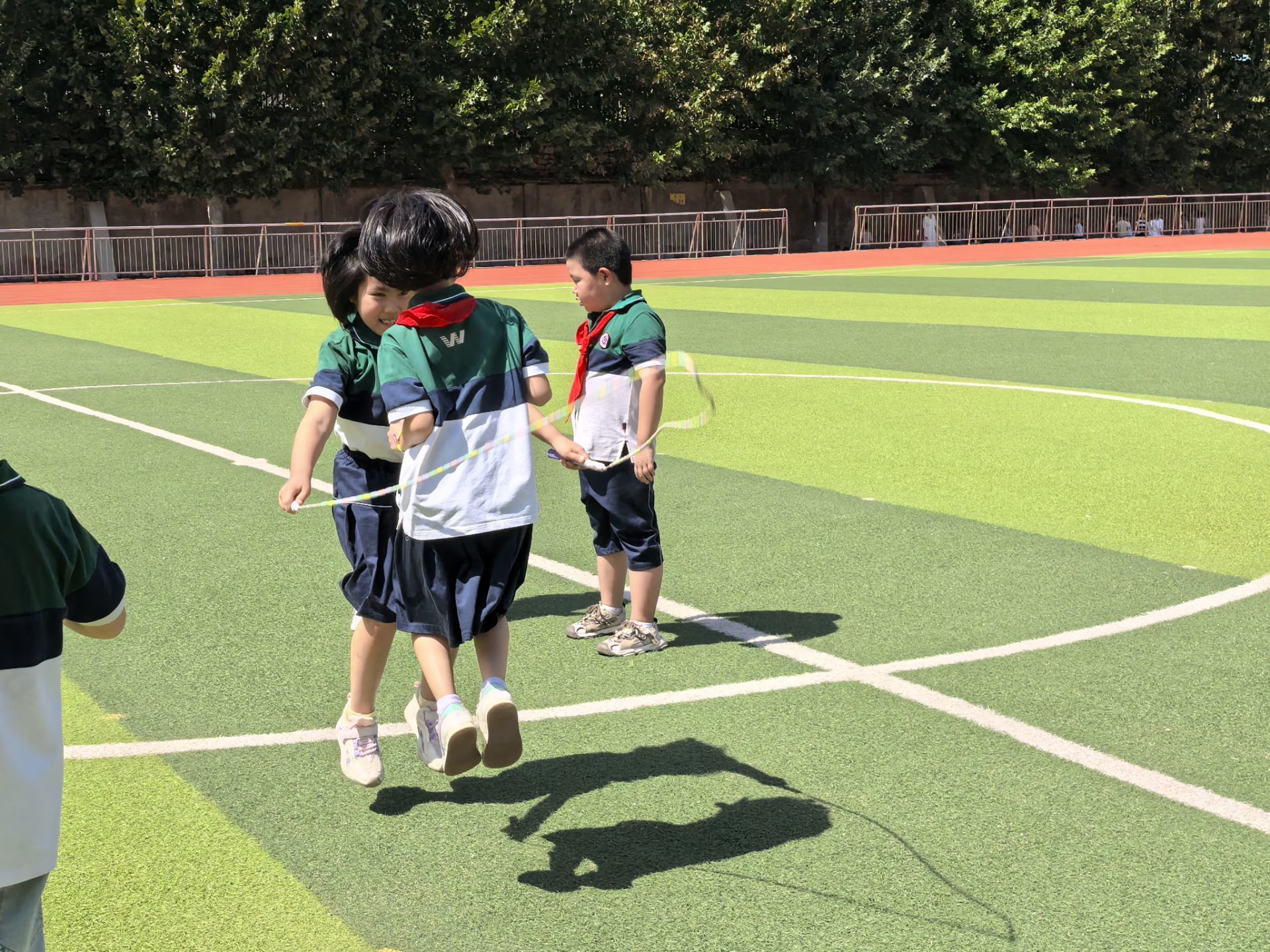 暖暖阳光播撒在操场,五彩的跳绳在孩子们弹跳间划出最美弧线,五十米、一百米……一场场精彩的赛跑正在争先恐后的上演,软软的沙包扔走疲劳与烦恼,却扔不走最美的笑颜,一根长绳摆动,绿茵场地尽情绽放的激情活力,那正是阳光少年的模样。
