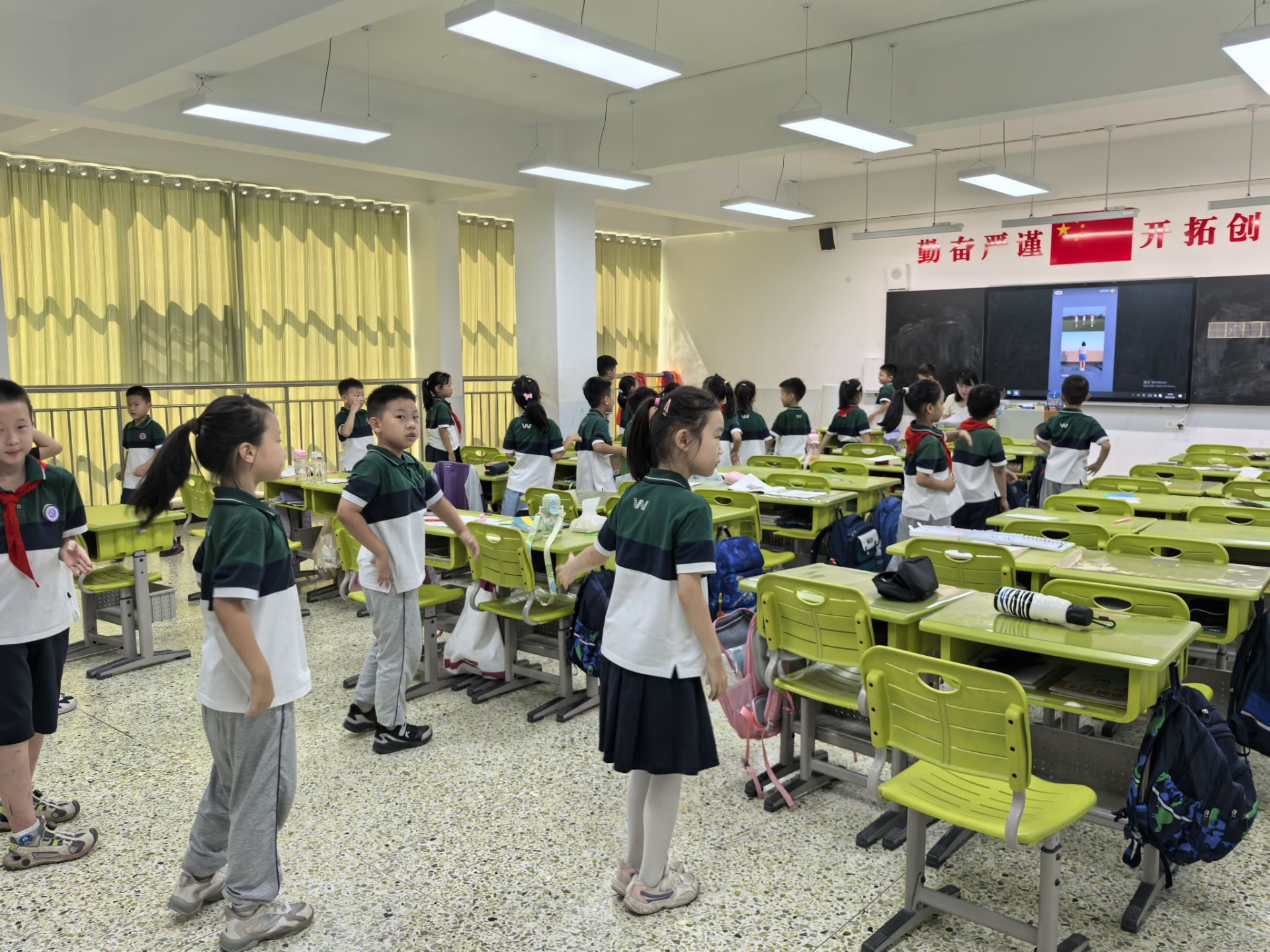 当广播体操的音乐在教室中响起,二年级的孩子们动作标准有力,一伸一展,舒放自然,他们的步伐整齐,一踩一踏,充满节奏!伴随着轻快的音乐节奏,同学们做出一系列规范而有力的动作。从体转运动到扩胸运动,从跳跃运动到整理运动,每一个动作都充满了力量与美感。孩子们用汗水浇灌青春,用活力点亮校园。