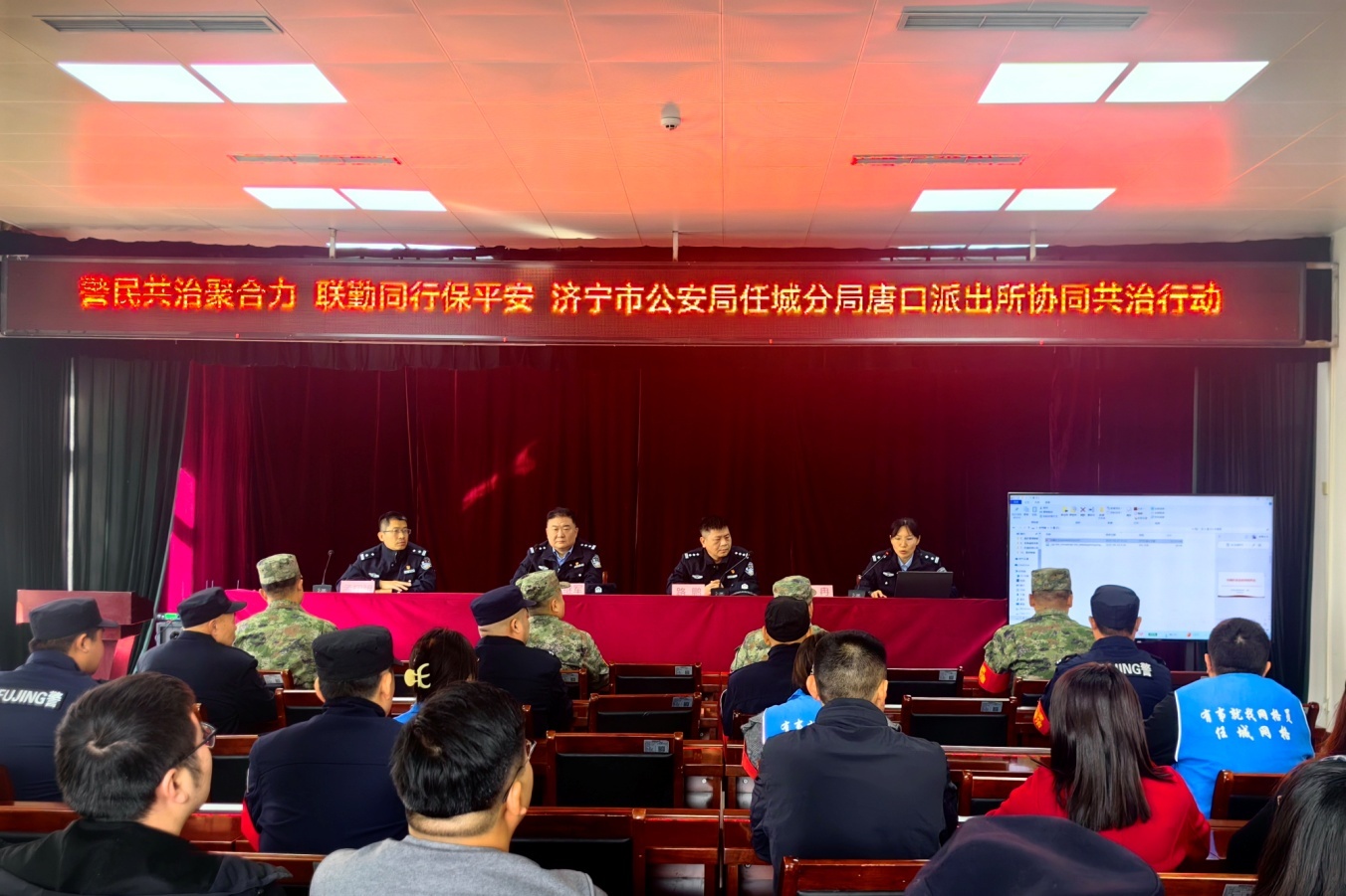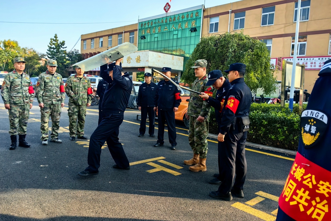 10月21日下午,一场主题为“警民共治聚合力 联勤同行保平安”的行动正在济宁市任城区第二人民医院唐口医院如火如荼开展。这正是济宁市公安局任城分局唐口派出所民辅警携手民兵、警务助理、网格员、保安员五支力量,落实“五联”机制,深入推动社会治安协同共治,守护辖区安全的一个真实写照。