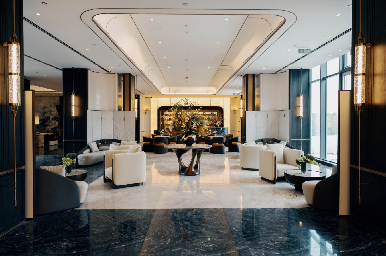 云瓴公馆实现了与城市发展同步、与生态繁华共生、与科技服务融合。建面约360㎡天幕大平层以“生活艺术化,艺术生活化”为设计理念,打造集商务办公、家族居住、圈层社交与精神栖息于一体的复合空间。整体氛围内敛而丰盈,通过高端配置与人性化尺度,营造“大象无形”的隐奢气质。享有内外双园景观与云瓴中心商业综合体资源,实现生态静谧与都市繁华的从容转换;同时构建智慧安防系统,结合星级酒店服务标准,形成高效、安全的服务体系。发布会现场,济高·云瓴公馆与万豪国际集团成功签约,引入了五星级标准的“全场景酒店式服务体系”,致力于为业主提供高效、尊贵且私密的酒店式服务保障,标志着项目服务标准全面对接国际酒店水准。项目同步围绕智慧出行、智域安防、智享服务三大维度,打造安全、高效、便捷的未来社区形态。加之毗邻约10万方云瓴中心一期潮流商街,以及二期高端总部办公与星级酒店等多元业态,济高·云瓴公馆已成为区域内资源高度聚合的标杆之作。