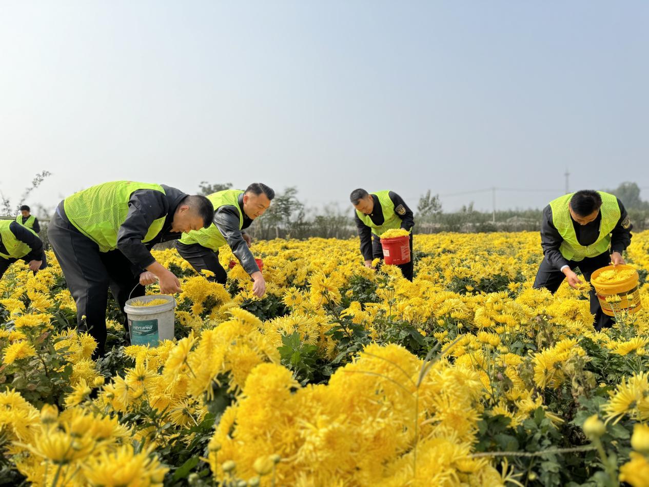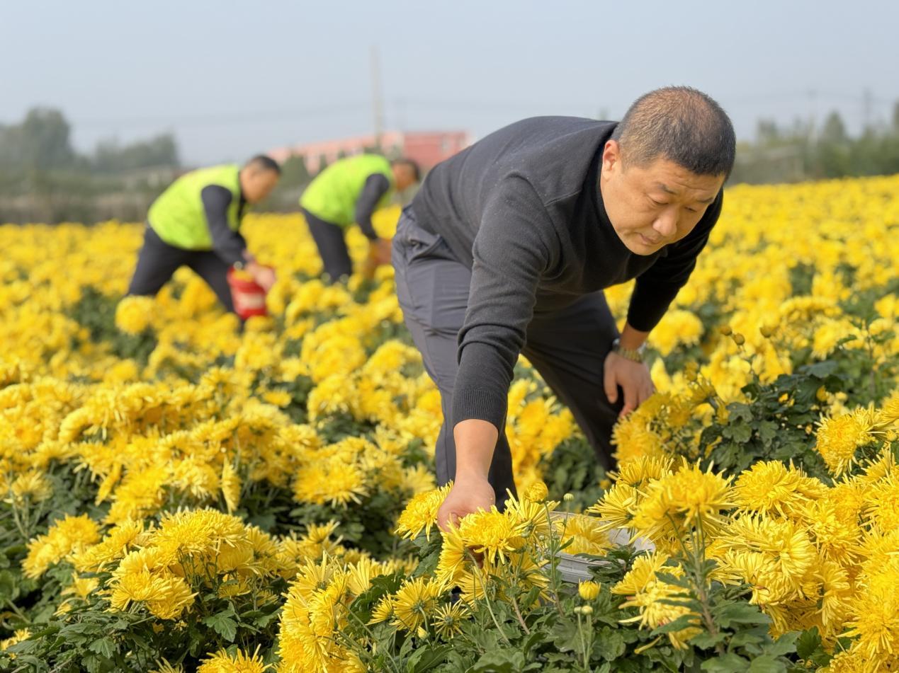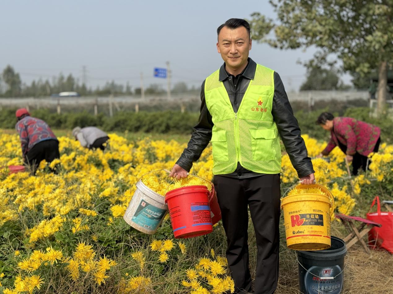 可今年秋雨偏多,花期突然提前,临时找不来足够人手,郑猛盯着满田菊花,想起镇退役军人服务站墙上“娘家人永远在” 的字,抱着试试的心态拨通了电话。