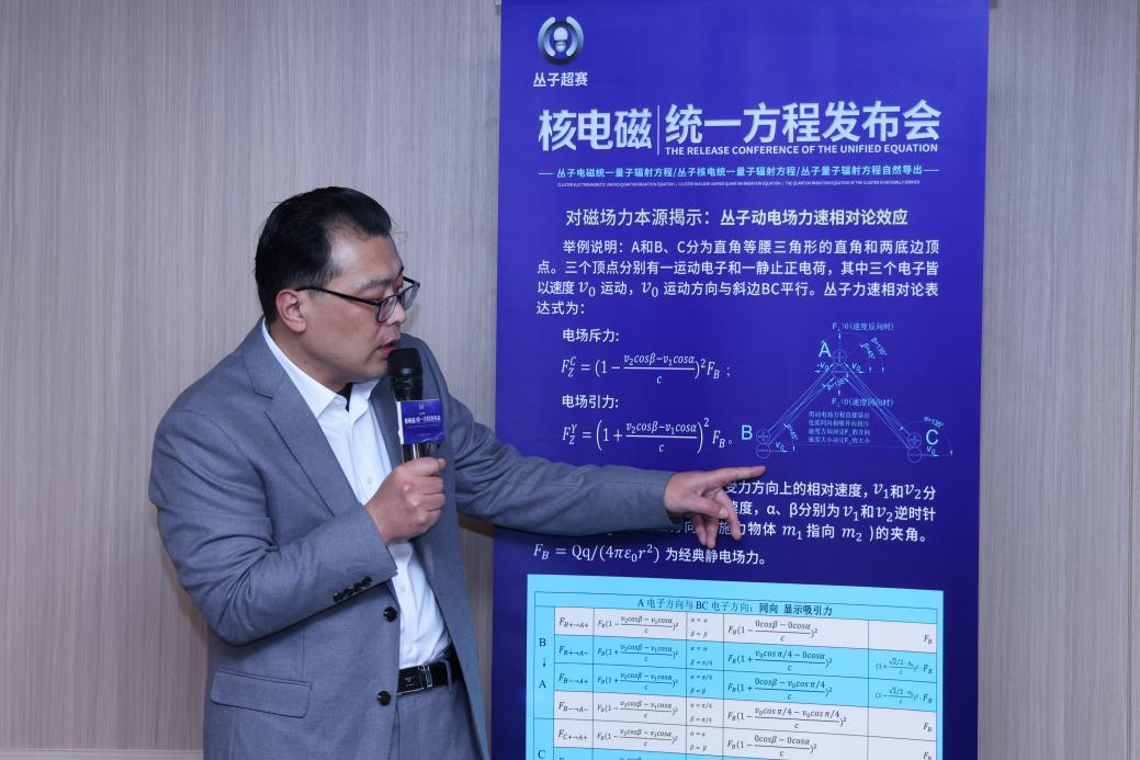 本次发布会以 “核电磁·统一方程” 为主题,吸引了众多学者及媒体记者出席。发布会现场,丛子超赛创始人丛永平先生详细介绍了核电磁统一方程的研发背景、理论架构及应用价值,揭开了这一前沿科学成果的神秘面纱。