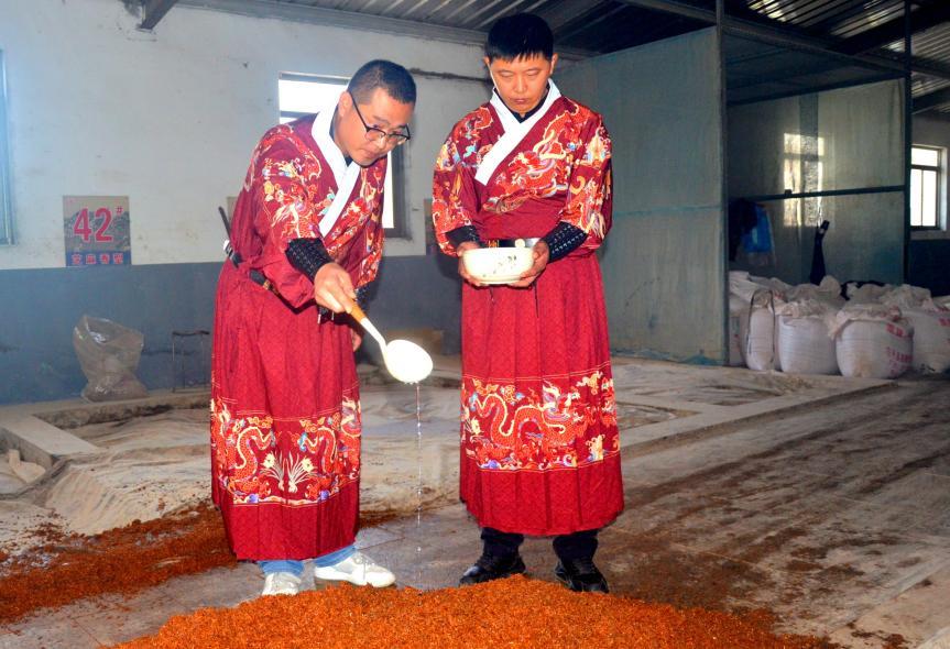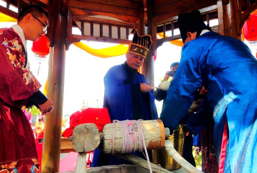 大典的取水仪式成为传承与实践结合的重要环节。在恢宏音乐声中,初献官、亚献官、终献官依次上前取酒泉之水,置于香案静置30秒。“泉灵赐福,水润佳酿;初心不改,基业绵长”的旁白声中,执事团队有序将泉水奉至酿酒室倒入发酵池,实现“泉养佳酿”的文化实践。