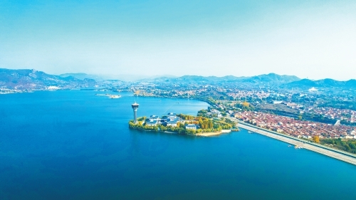 11月3日,辽阔的雪野湖湖面与蓝天交融成一片澄澈的蓝,勾勒出“水天一色”的绝美景致。空中俯瞰,一汪湖水静卧于群山翠谷间,15平方公里的宽阔水域如“群山怀抱中的蓝宝石”,在阳光照耀下波光粼粼。抬眼望去,远山如墨,湖天一色,宛若一幅立体的“山水和谐”画卷。(济南日报·爱济南 记者:刚永超)
