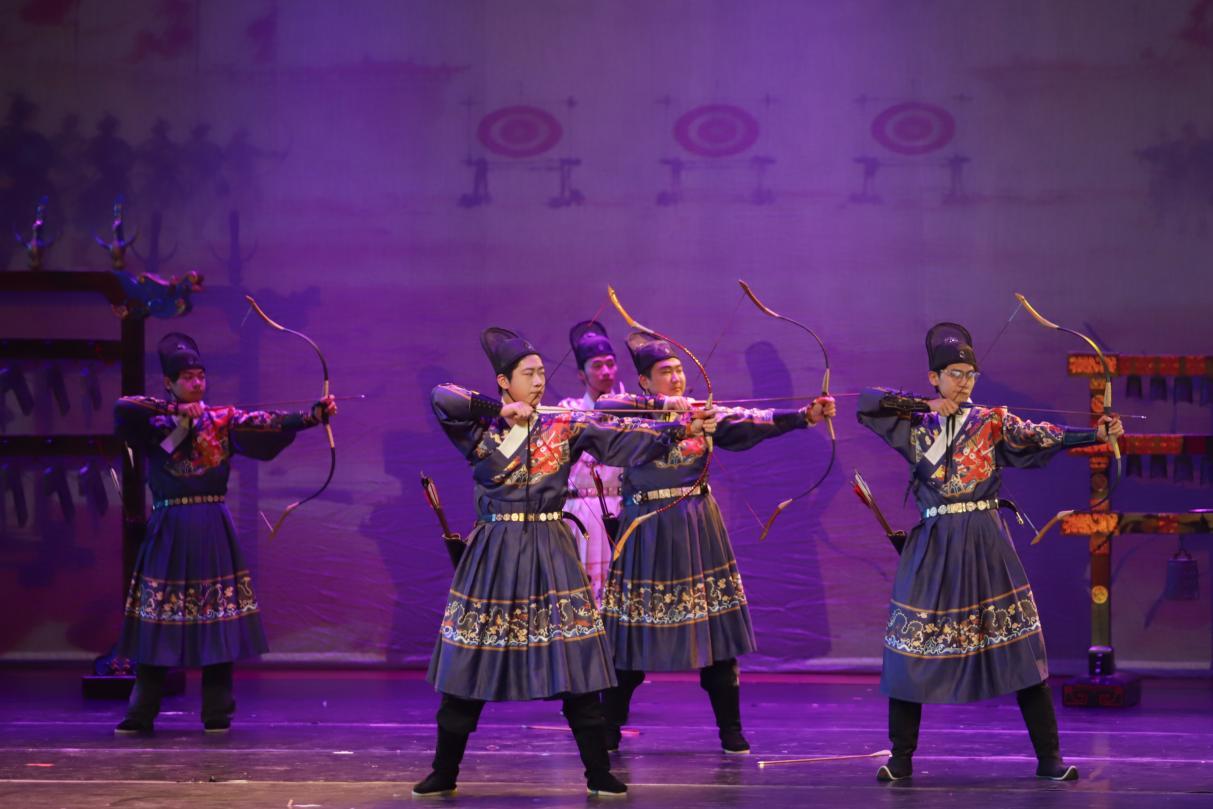 体育科学学院射艺团队呈现了《孔子射艺箭阵》,射手们动静有节,进退如仪,生动诠释了“射者,仁之道也”的文化内涵,赓续孔子六艺之薪火于今朝。