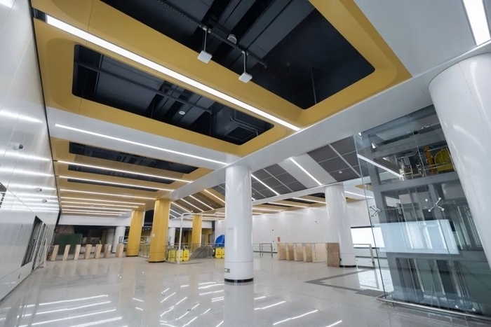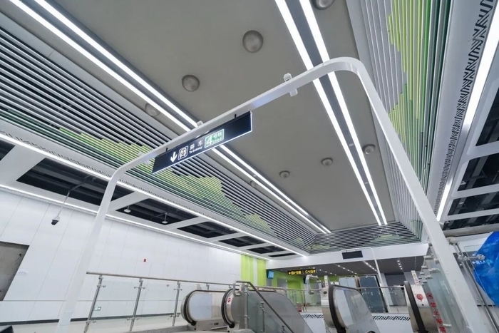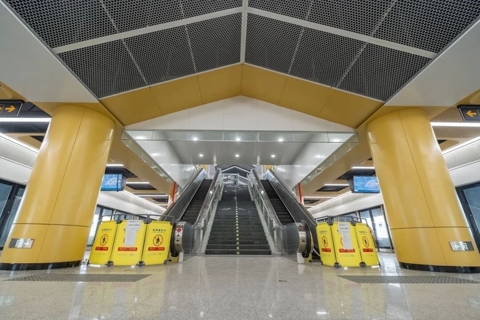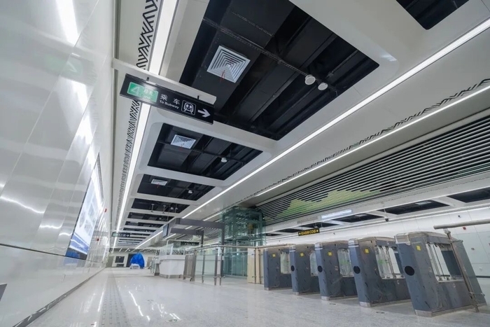 位于唐冶中路与世纪大道交叉口的唐冶站,装修设计结合车站标准双柱三跨的结构形式,以传统坡屋顶作为设计语言,打造端庄大气的空间氛围。该站设3个出入口,B口可换乘高新东区云巴,周边覆盖唐冶体育中心、奥特莱斯、历城区政务中心等城市地标。