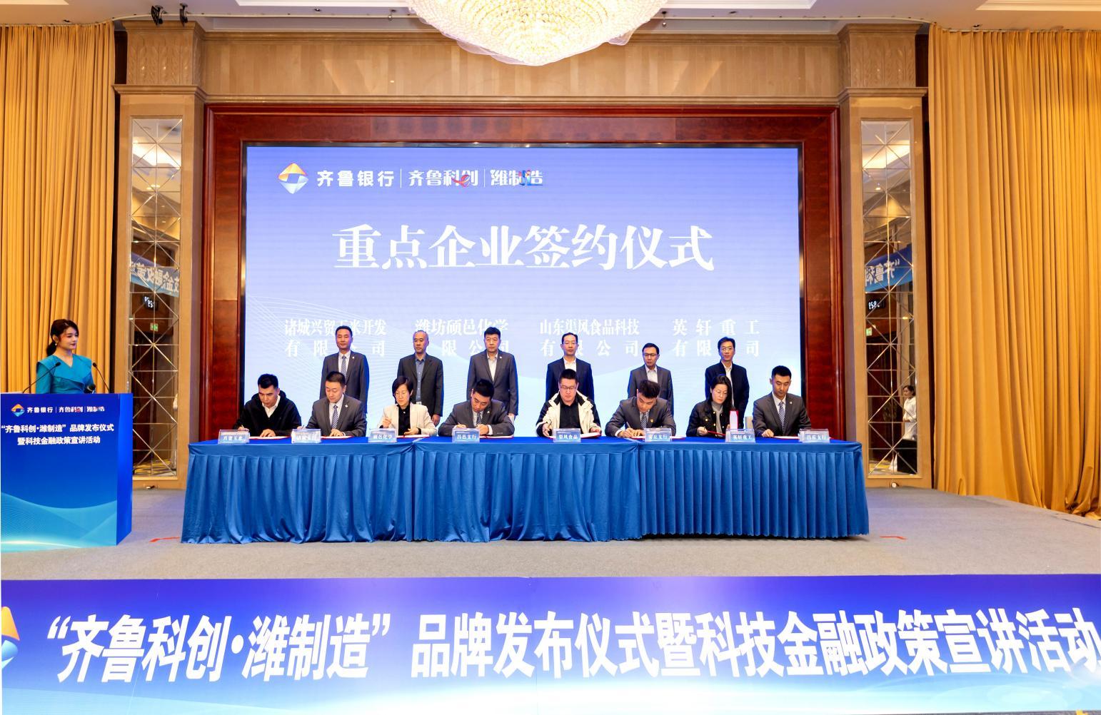 2025年11月6日,“齐鲁科创·潍制造”品牌发布会暨科技金融政策宣讲活动在潍坊富华国际会议中心成功举行。本次活动在潍坊市科学技术局、中国人民银行潍坊市分行指导下,由齐鲁银行潍坊分行主办,标志着潍坊市在政银协同、以金融创新驱动新质生产力发展方面迈出关键一步。潍坊市科学技术局局长杨德强、中国人民银行潍坊市分行副行长葛大江、潍坊市产业技术研究院执行副院长曹晓军、齐鲁银行副行长陶文喆等嘉宾出席,与百余家科技型企业代表共同见证品牌发布。会上,齐鲁银行潍坊分行辖内机构分别与10家重点科技型企业现场签署了合作协议,实现了金融资源与产业需求的“零时差”对接。