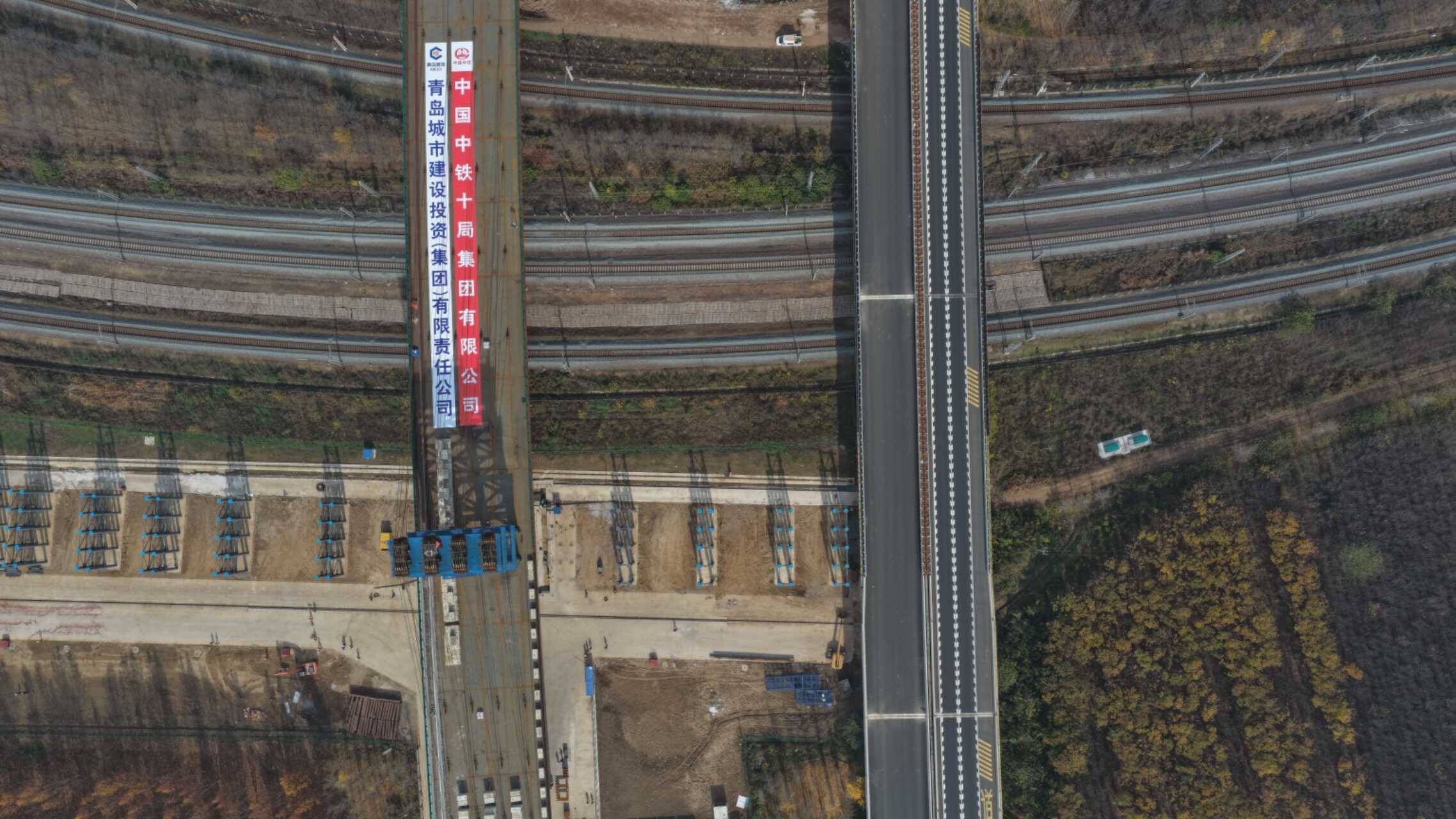 作为全线的控制性节点,该桥上跨胶济、胶新两大铁路干线,施工区域日通行客货列车超过百列。钢箱梁须在铁路有限的“天窗期”内完成86°精准转体,施工环境复杂,安全风险极高。