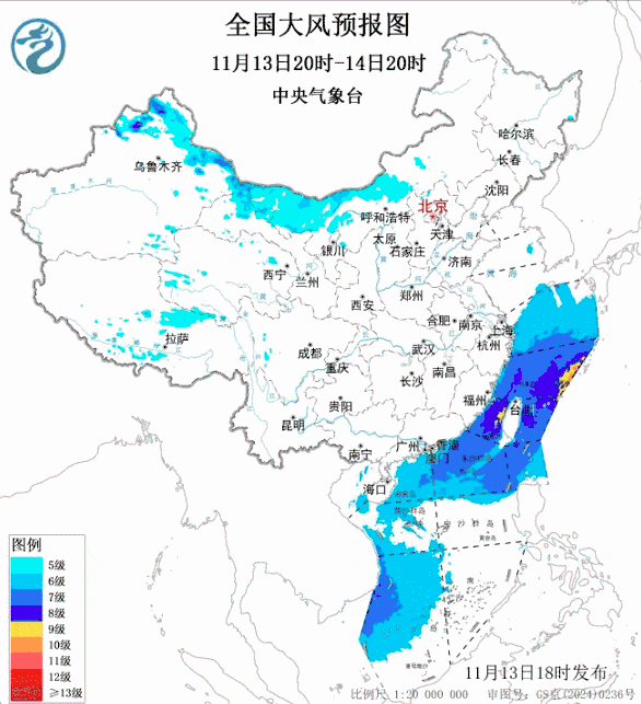这次过程中,中东部多地会出现大风天气,要注意风寒效应的影响。明天,大风主要在新疆北部、内蒙古等地;后天,东北地区、华北普遍有4至6级风;16至17日,南方多地也将出现4至5级偏北风,阵风更强一些,可达6至8级。