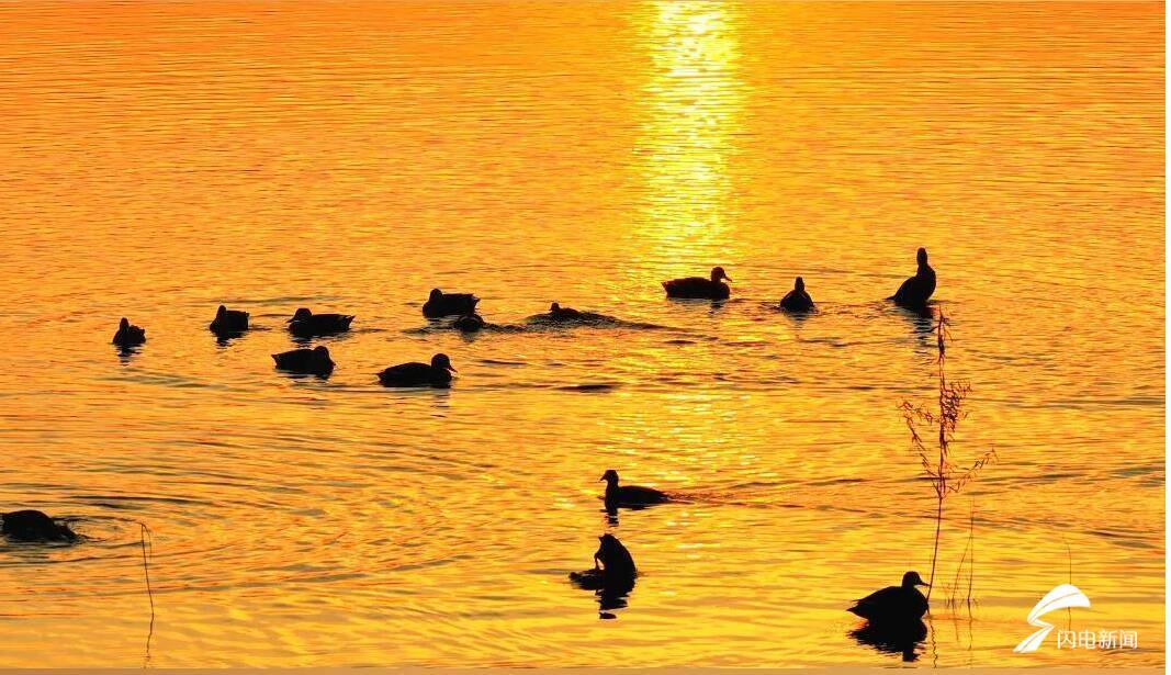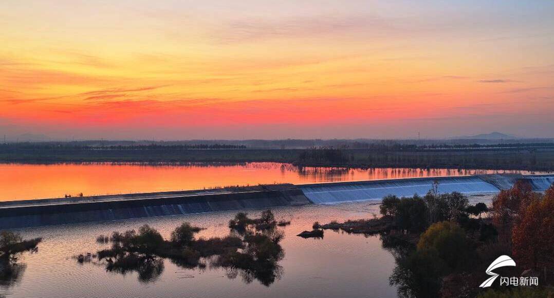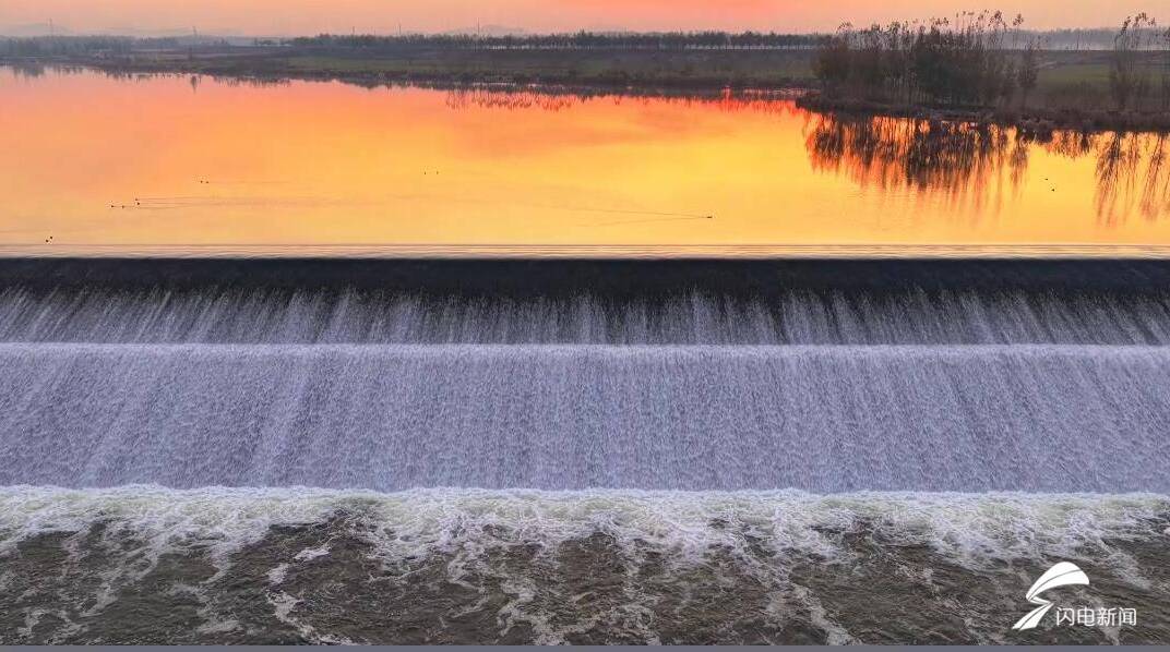 齐鲁网·闪电新闻讯 初冬的戴村坝,如苍龙横卧在天地间。朝霞映照下,奔腾的河水化作万千飞雪;群鸟在金光粼粼中起舞,与飞瀑共同演奏山河交响曲。