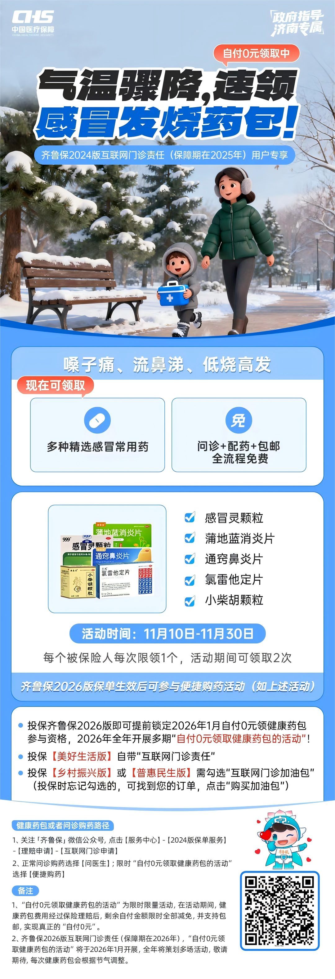 在这个寒冷的冬天,齐鲁保始终与您并肩守护健康。别再犹豫,赶紧按照流程领取您的 0 元专属小药包,也别忘了为 2026 年的健康提前锁定福利,让齐鲁保成为您冬日里的健康 “守护者”!