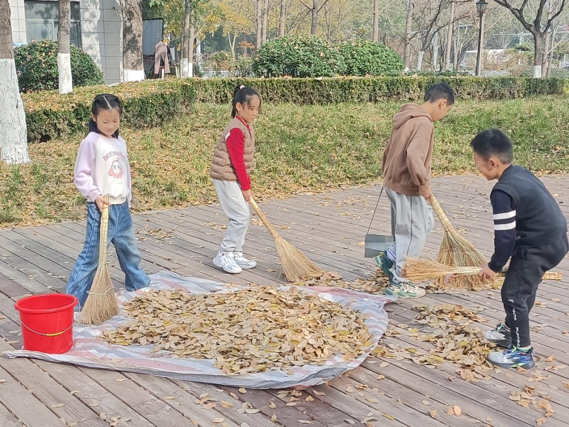 冬意初临,天地间还留着秋的余韵,社区小公园铺满了如蝶般翩跹的落叶,红橙黄绿交织成冬日里最绚烂的景致。济南高新区一实验教育集团开拓校区二年级的孩子们在家长的陪伴下,赴一场初冬的美好之约,让清冽的空气里漾起劳动的暖意与童年的欢歌。