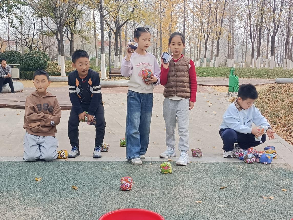 劳动的汗水未干,投沙包游戏已然上线。小伙伴们迅速分成两队,精准投掷、密切配,每一个动作都活力满满。初冬的阳光透过稀疏的枝丫,洒下斑驳暖光,为奔跑的身影镀上一层金边。输了的孩子笑着加入加油阵营,赢了的小队欢呼雀跃,清脆的笑声驱散了寒意,让冬日公园充满生机。