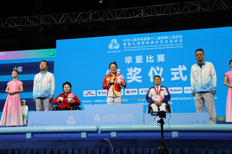 第十二届全国残疾人运动会暨第九届特殊奥林匹克运动会举重项目比赛于2025年11月27日至12月4日在广东东莞举行。山东省举重代表队共派出13名运动员参赛,经过顽强拼搏,最终获得19枚奖牌,包括金牌4枚、银牌9枚、铜牌6枚,位列奖牌榜全国第一。