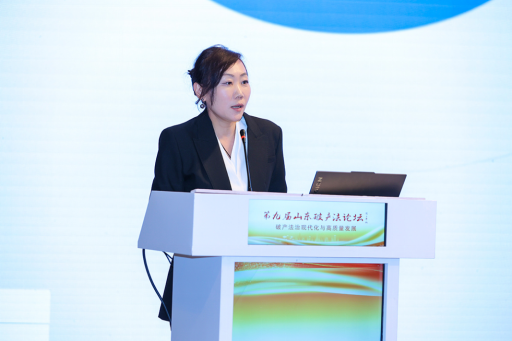 山东省并购联合会常务副会长兼秘书长蔡芳在致辞中深刻剖析了破产程序中并购重组的核心价值,指出其并非单纯的资产交易和企业扩张,而是服务国家战略、驱动产业升级、优化资源配置的核心手段。她表示,山东省并购联合会愿与各界携手,共同深化对并购重组这一工具的理解与实践,为完善中国特色市场经济法治体系、助力高质量发展贡献专业力量。