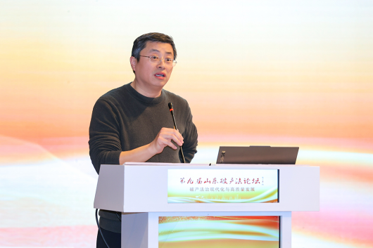 “党的二十届四中全会提出了社会主义法治国家建设达到更高水平的目标任务,强调要健全完善市场化、法治化的法律制度,为新时代破产法事业发展及破产法修改提供了根本遵循和行动指南。破产制度作为市场经济的基础性制度,是优化资源配置、防范化解市场风险、维护市场秩序的重要法治工具,被誉为市场经济的“清道夫”和“稳定器”。现代法律制度的完善程度,直接关系到营商环境的法治化成色,关系到经济社会高质量发展的根基稳固,更关系到国家治理体系和能力现代化在经济领域的具体实践。”山东省法学会党组成员、专职副会长兼秘书长孟斌致辞时表示。