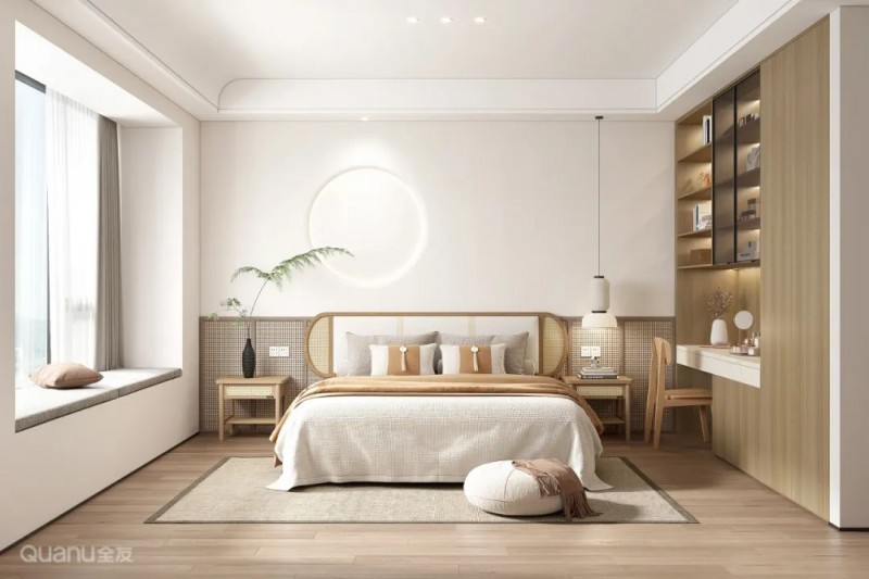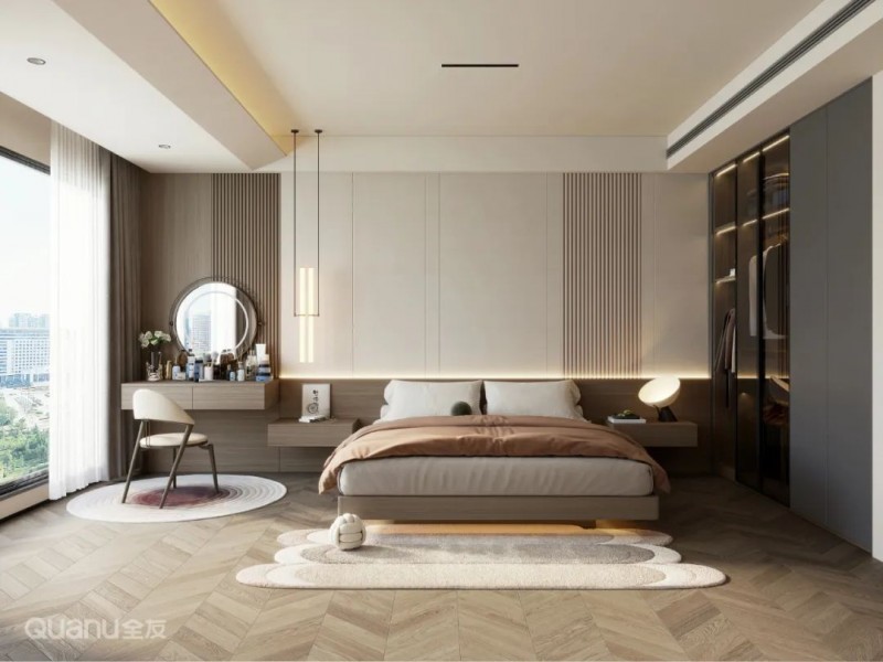 墙、地、柜、门以哑光、肤感材质为主;软装家具多采用棉麻、羊毛、绒感等面料,自带舒适肌理感,增强空间质感与亲和力。