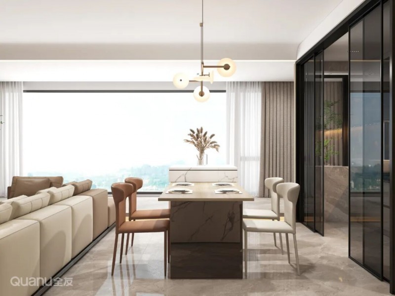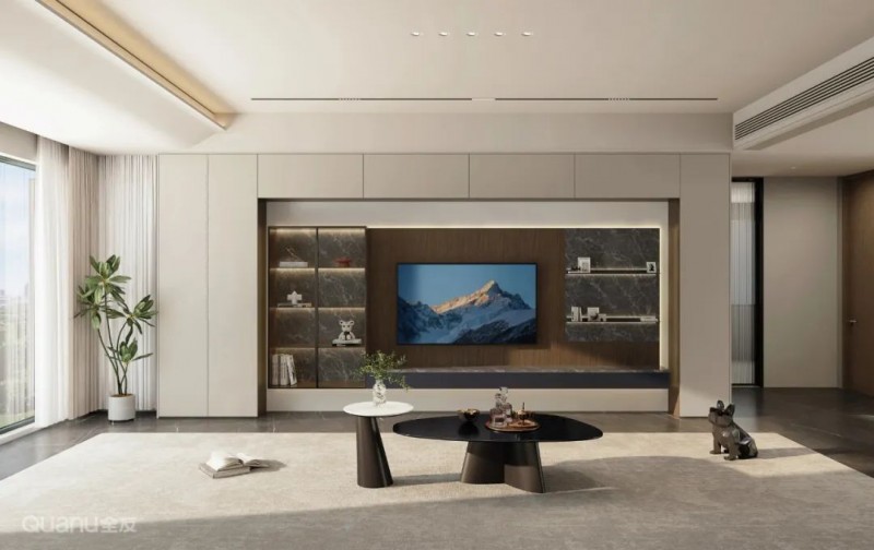 常以米白、象牙白为主,结合开放式设计,增强通透感与互动性,使空间更加开阔,营造出柔和、明亮的居家氛围。