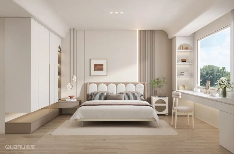 通常采用白、米白等高明度、低饱和的奶油色作为主色调,整体空间色调统一。