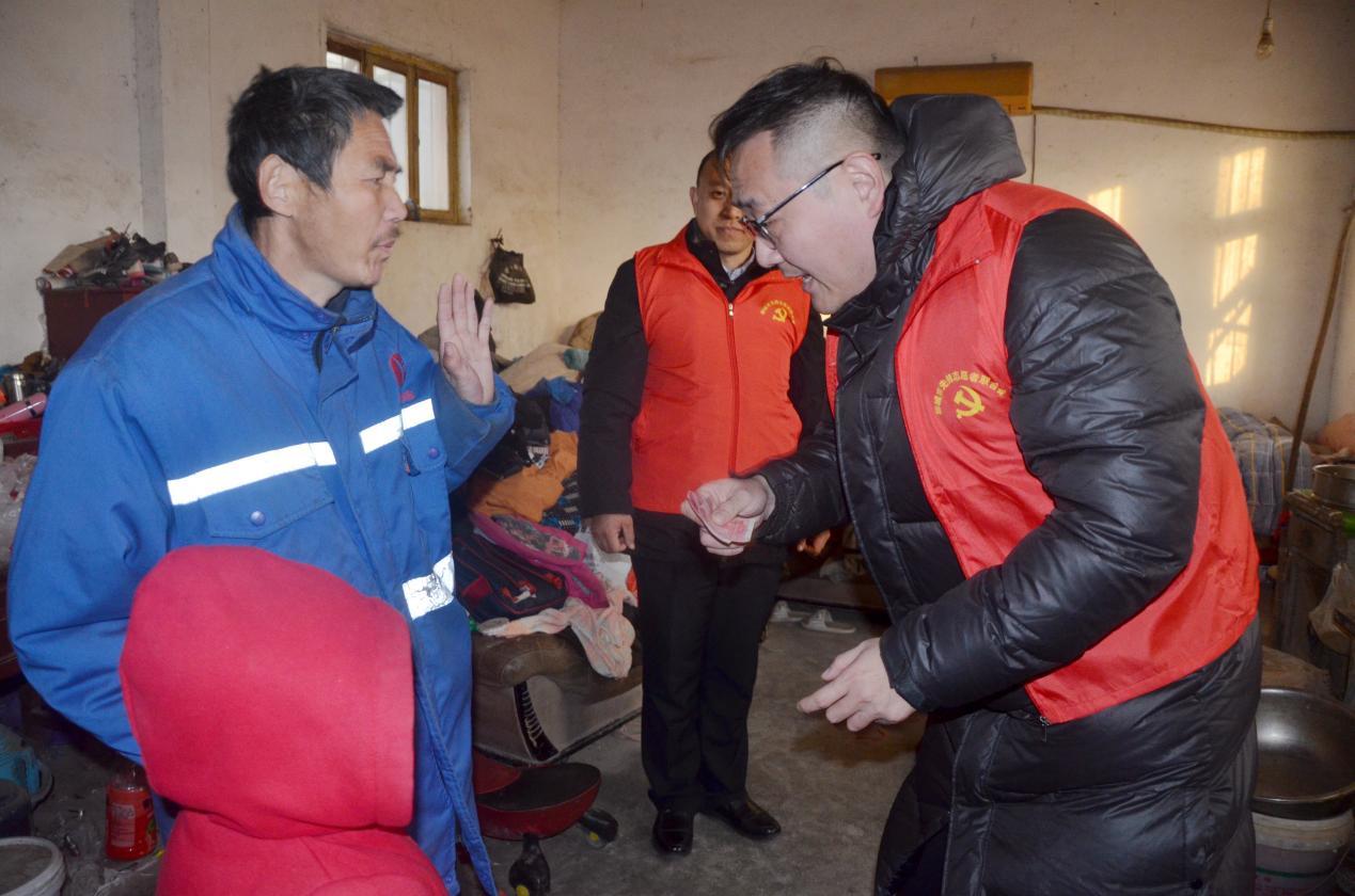推开小阳阳家的门,简陋的屋内堆满杂物,与这个家庭的困境形成鲜明对比的,是父子俩见到志愿者时眼中的光亮。“你冷不冷?”志愿者尹延丛的询问,让小阳阳因生活磨难导致木讷的小脸上露出了久违的笑容,低着头嘴里说出细微的“不冷”之声。今年8岁的阳阳,日常陪伴他的只有父亲和满室的沉寂。当志愿者们将装着牛奶、火腿肠和棉衣等生活物品递到父子手中时,一向沉默的父亲不住地重复着“谢谢”,而孩子的目光则被志愿者携带的相机牢牢吸引,好奇地驻足观看,眼中满是对外部世界的向往。