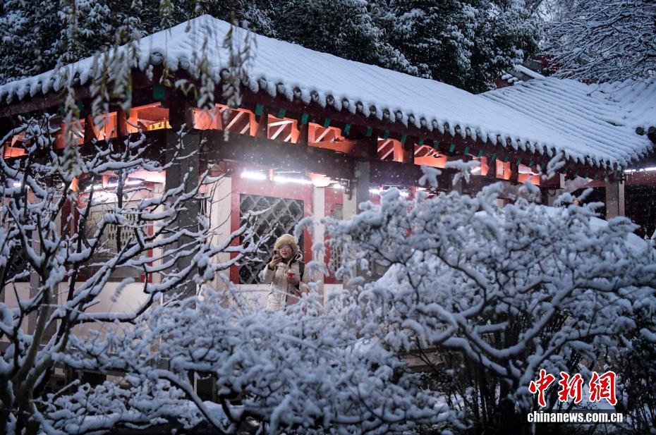 12月12日,游客在济南趵突泉公园里赏雪观泉。当日,山东济南迎来2025年入冬以来首场降雪,济南趵突泉公园里白雪皑皑,美不胜收。中新社记者 张勇 摄