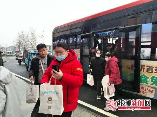 琅琊新闻网讯 12月13日上午10时,迎着簌簌的小雪花,2台崭新的D101公交车满载乘客,相继驶出华丰国际服装城B区,奔向中国国际食品城——这是临沂市首条零食免费公交专线,由中国国际食品城打造,计划每个周六、周日开行。