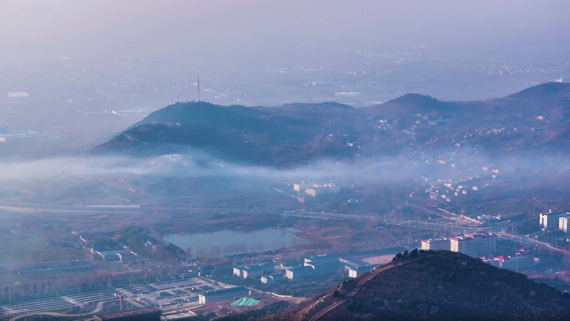 仲冬时节,枣庄圣土山现平流雾景观。航拍视角下,层叠山峦被薄雾轻裹,宛如水墨长卷。圣土山作为薛城最高山,冬日雾景空灵雅致,其“半崮”地形与转播塔构成独特地标,雾中山景成鲁南冬日诗意一景。 闪电新闻记者 刘印红 报道