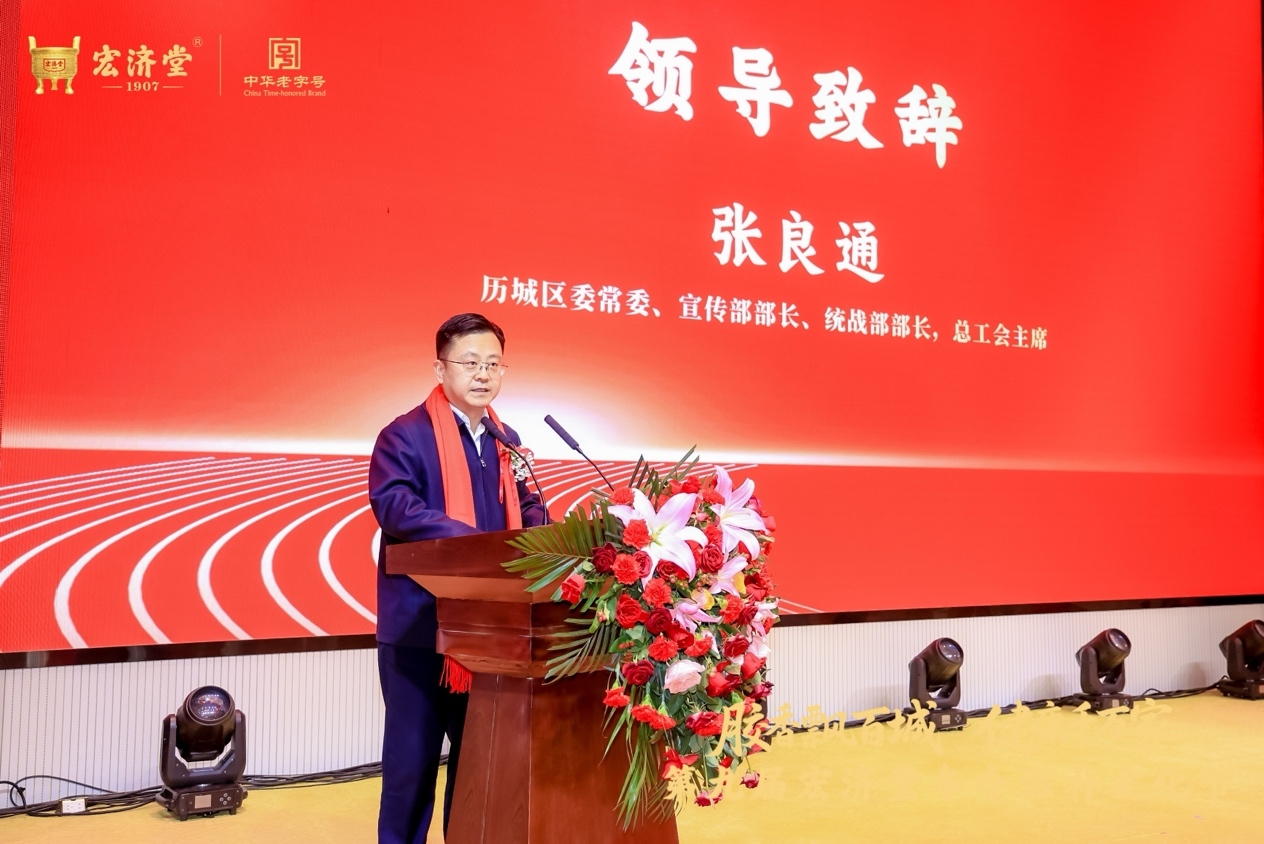 政企学研多方力量的汇聚,让本次文化节成为共谋中医药高质量发展的重要平台。开幕式由宏济堂制药集团董事长蒋红升先生主持,山东省、济南市、历城区各级相关领导,行业协会代表、中医药专家及主流媒体齐聚现场,在开幕式上共话产业未来。宏济堂制药集团总裁罗小平在致辞中精准锚定企业发展与国家战略的同频共振,他表示,今年是“十五五”规划布局之年,宏济堂制药正以“五个元年”战略向“智慧国药领航者”迈进,而本次文化节正是宏济堂制药推动健康理念从“被动治病”向“主动养生”转变的具体举措。历城区委常委、宣传部部长、统战部部长、总工会主席张良通,山东省医养健康产业协会秘书长李会战等领导先后致辞,从区域发展与行业赋能的角度,肯定了宏济堂在传承中医药文化、引领医养健康产业升级中的核心作用,为产业高质量发展指明方向。