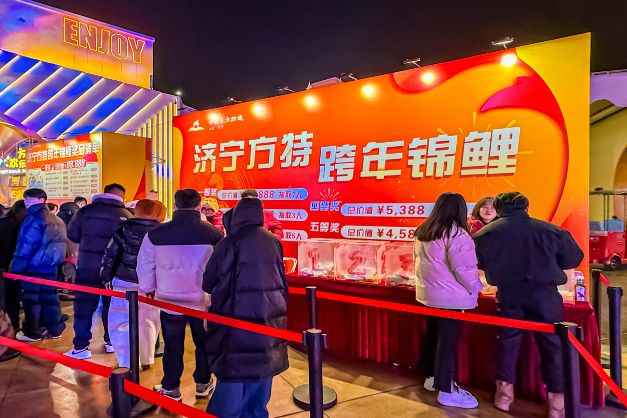跨年夜期间,济宁方特“锦鲤抽奖”环节将为游客带来丰厚豪礼:10万豪华奖池加码升级,涵盖苹果17 Pro Max手机、国内外豪华双人游、雅迪电动车等重磅好礼,助力游客开启鸿运当头的美好新年。