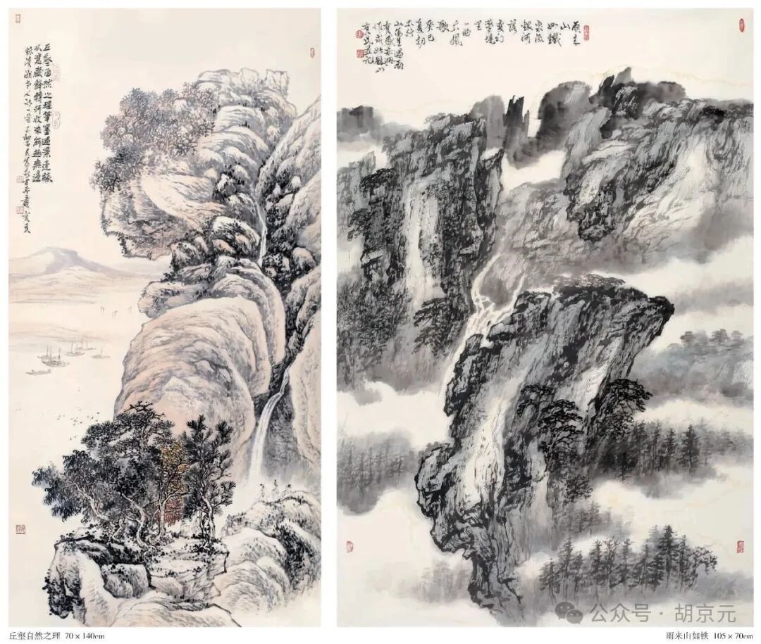 “虚心竹有低头叶,傲骨山无仰面峰”,这一直是先生为人处世的写照,也是其艺术追求的隐喻——对传统保持敬畏之心,对创新秉持开拓之志。从上世纪拜师学艺的少年书生,到如今砚席相承、兰玉满庭的先生,望八之龄的胡有民先生依然以笔为尺,丈量着华夏山河的厚度,以心为砚,研磨着国画文化的深沉底蕴。