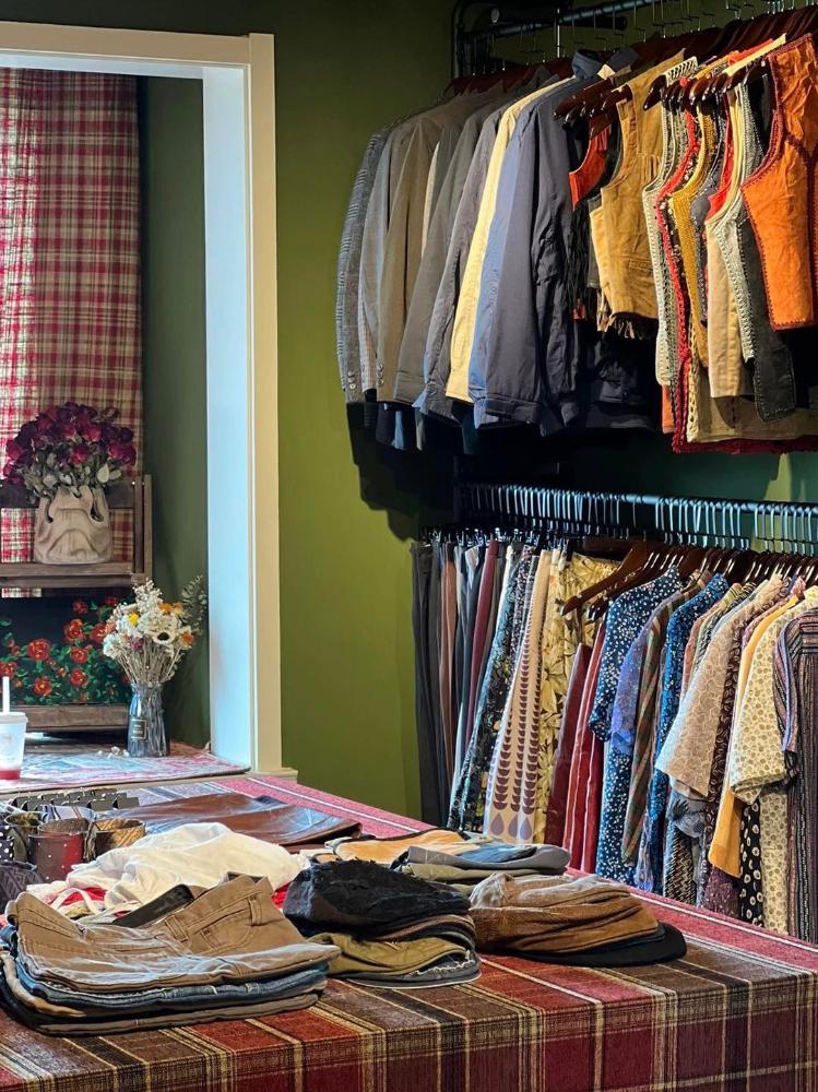 郑佳林的中古店里,精心陈列着许多二手衣物。(王鹤颖 报道)