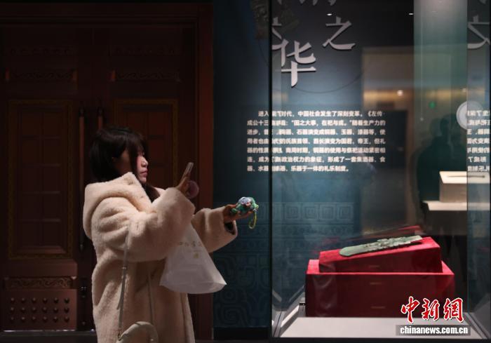 12月28日,宁夏银川,市民在宁夏博物馆观展。据悉,本次“礼乐和合——山东文物特展”精选113件(套)文物精品,涵盖玉石器、陶器、铜器等多个类别,系统展现了山东地区在礼乐文明形成与发展中的重要地位。中新社记者 于晶 摄