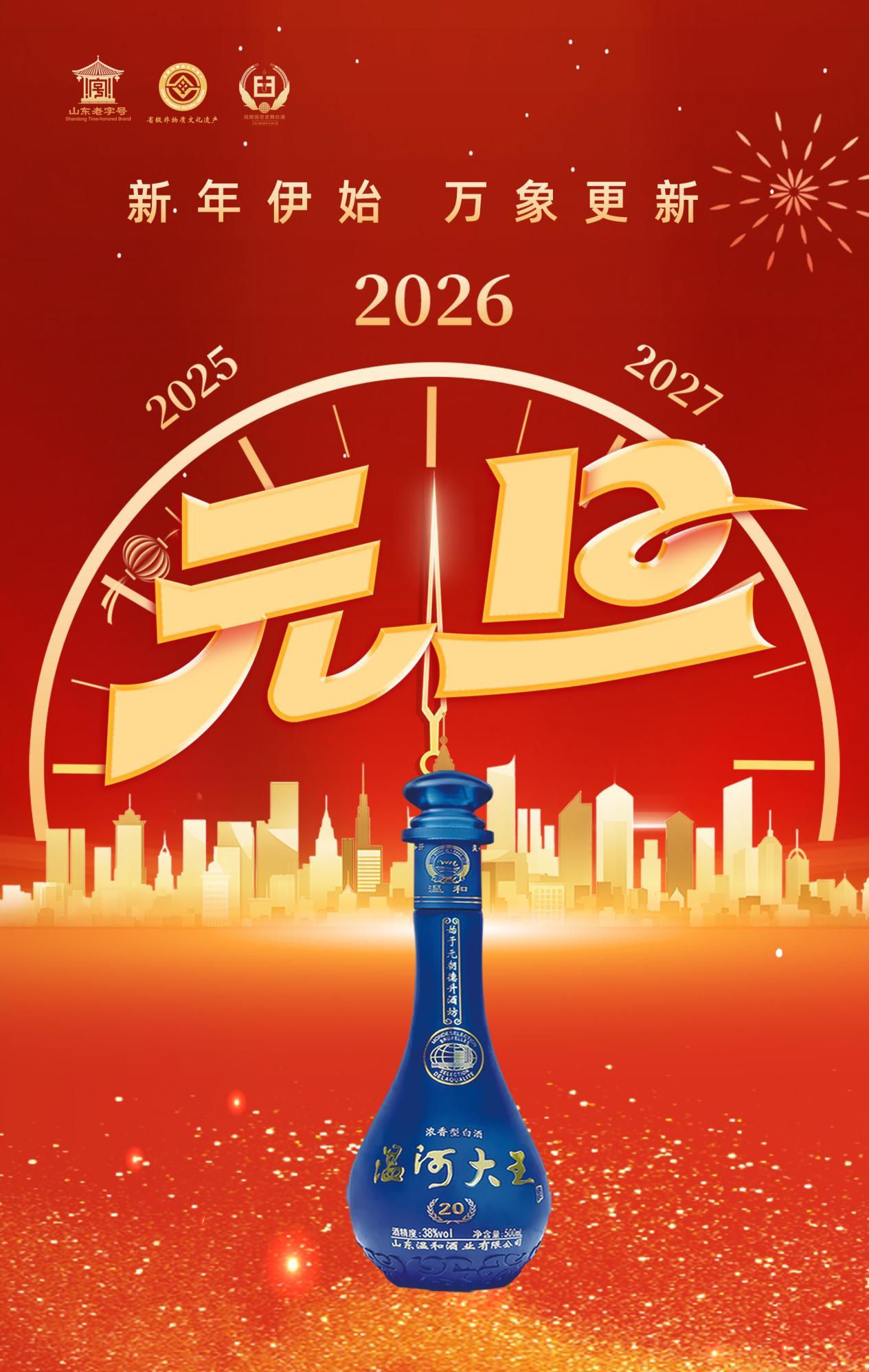 值此2026年元旦来临之际,四川省政协委员、临沂市工商联副主席、山东温和集团董事长韩东携全体干部员工,向长期以来关心支持温和酒业发展的各级领导、行业同仁、全国经销商伙伴及社会各界朋友们,致以最诚挚的感谢和最美好的新年祝福!