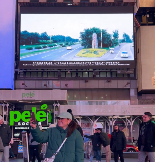 纽约时代广场街区面积仅0.1平方公里,每年吸引超5000万全球游客,是全球媒体关注的焦点。商河温泉选择在此亮相并在人流高峰时段循环播放,不仅能直接触达现场游客,更能通过游客随手拍摄的图片、短视频,在全球主流流量媒体形成二次传播,实现“现场曝光——线上裂变”的传播闭环。这种“一次投放,全球传播”的效应,让“商河温泉”的名字突破地理限制,加速走出国门。
