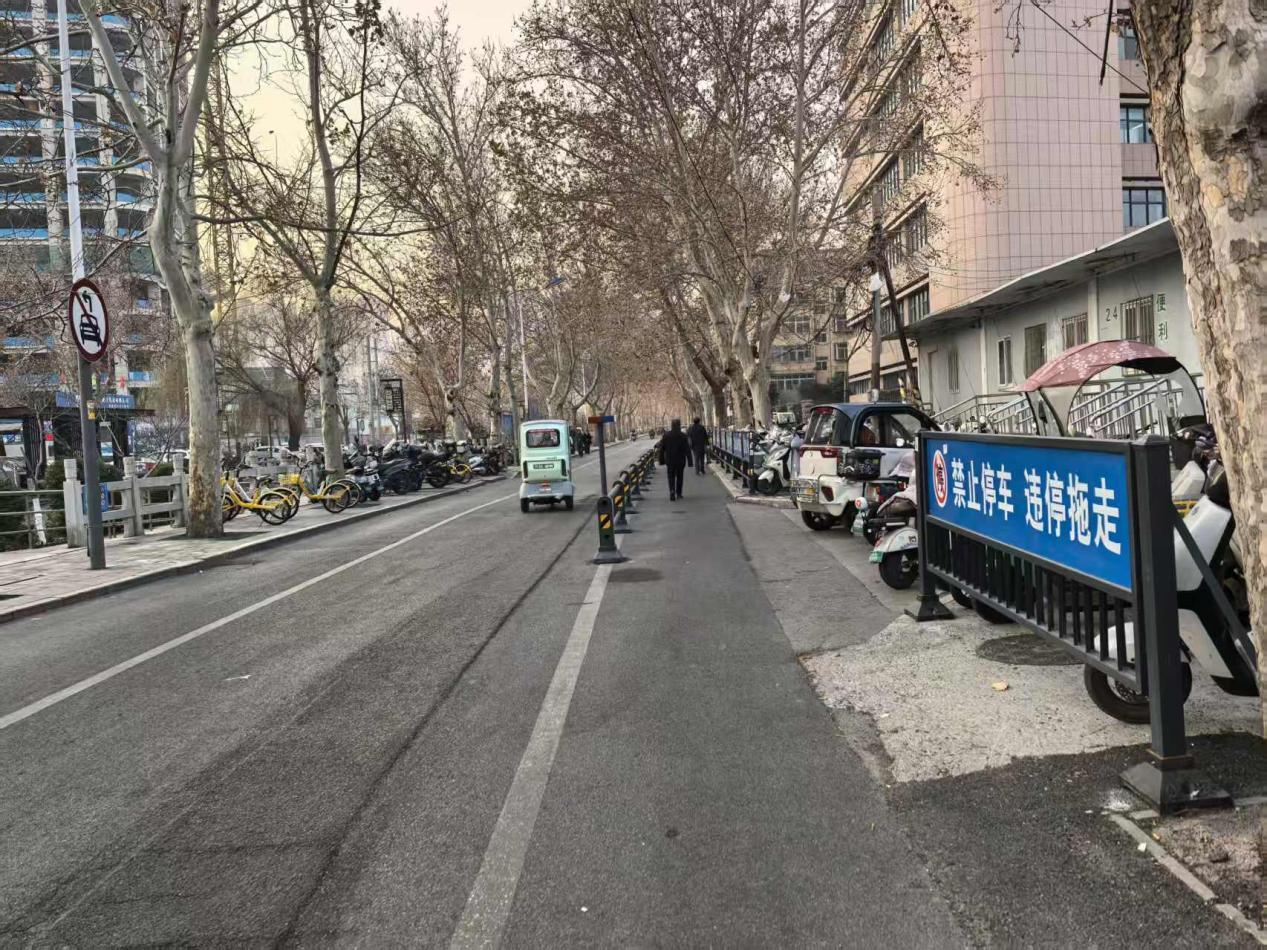 如今走进省立三院周边,昔日的交通乱象已不复存在:非机动车整齐停放在划线区域内,人行道、盲道恢复畅通,人车混行的隐患基本消除。