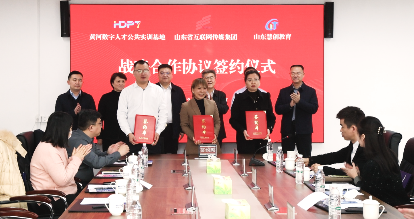活动中,山东省互联网传媒集团大众网海报新闻技术总监杨博、山东慧创教育科技有限公司董事长杨慧婷、黄河数字人才实训基地运营(山东)有限公司董事长董良分别发言,三方详细介绍“大葱实训”项目中各自的优势资源、技术支撑能力、课程体系及实训基地运营等方面的具体规划,并强调该项目在推动区域经济、促进人才就业、加快产业转型方面的深远意义。