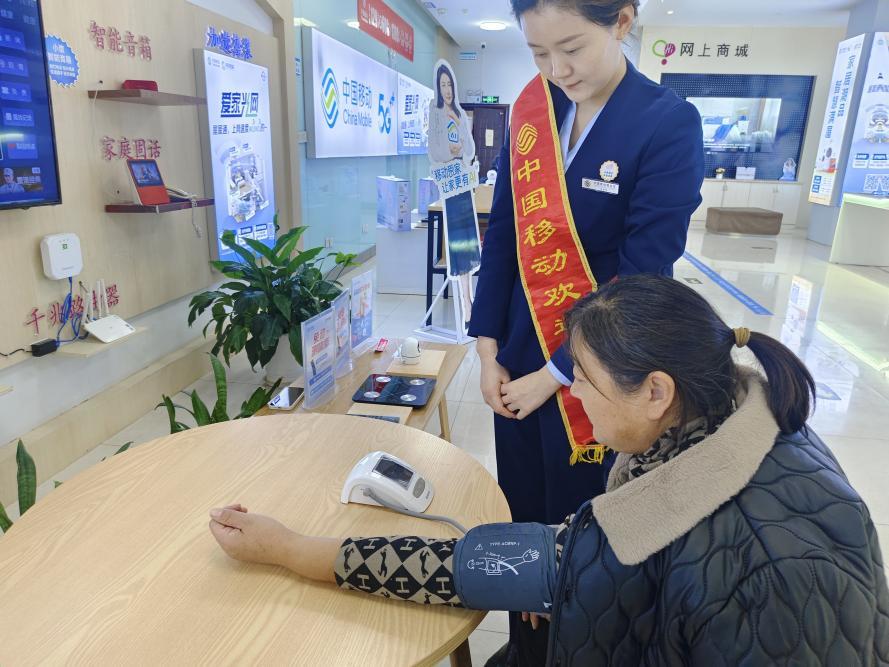 “营业厅的服务越来越周到了,不仅能办业务,还能测血压,工作人员还教我用手机视频,太方便了。”前来办理业务的李阿姨对营业厅的服务赞不绝口。